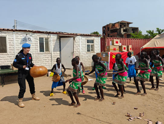 中國維和警察向戰而行,不僅為了守護和平,更要播撒大愛,讓世界感受到中國擔當與中國溫度。在流民營走訪時,我認識了單身母親麗莎,她抱著襁褓中的孩子,剛從沖突中逃生,眼神裡的驚恐和無助讓我心疼不已。從那以后,每次走訪路過,我都會給她們送點吃的用的,孩子生病時我第一時間幫忙聯系中國醫療隊。為了讓麗莎能自食其力,我還主動幫她申請聯合國營區的環衛工作。后來,我牽頭組織聯合國婦女活動,把“女性權益保護”的座談會開在帳篷裡、樹蔭下。看著她們從最初的沉默低頭、攥著衣角說“我不行”,到后來慢慢嘗試表達想法、笑著說“我想試試”,我知道,那些被戰爭打碎的信心與希望,正在我們的努力下,一點點重新拼湊。我始終堅信:溫暖的力量可以跨越國界,和平的種子終將在這片土地上生根發芽!