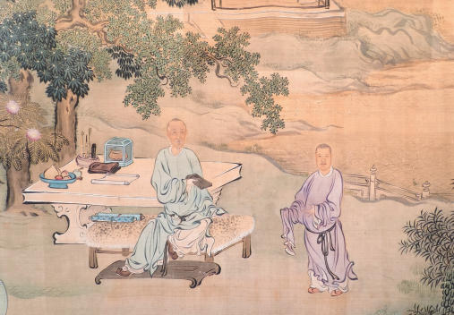 清代画家禹之鼎所绘《西陂授砚图》(局部),中国国家博物馆藏。